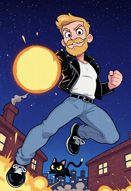 매우, 매우 만화적인 스타일! 레트로 만화와 현대의 초현실적 애니메이션이 혼합된 스타일.