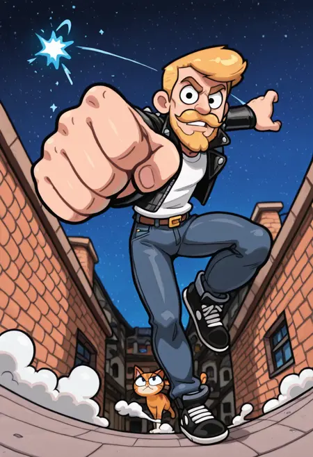 A very, very cartoony style! Retro cartoons mixed with modern hyperstylized animations.