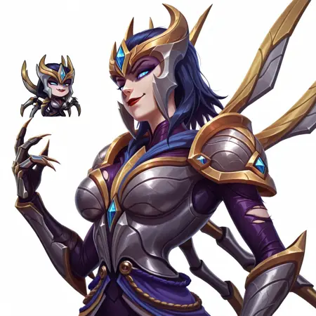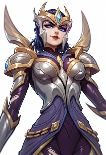 1girl, victorious_elise, 深蓝色头发, 中长发, 向后梳发, 蓝色眼睛, 发光眼睛, 红唇, 眼影, 紫色眼线