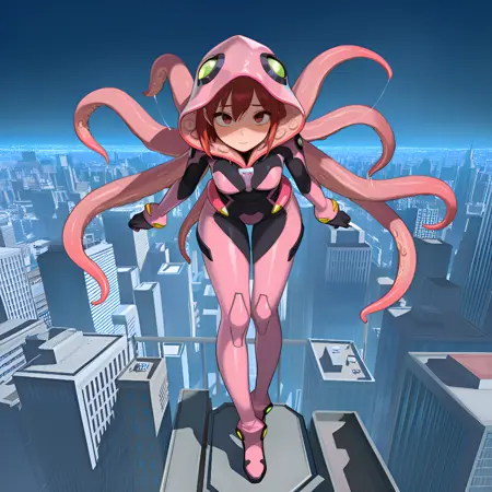 这个LoRA会让角色穿上触手装/斗篷/兜帽,或从背部生长出触手,只需简单提示即可生效。