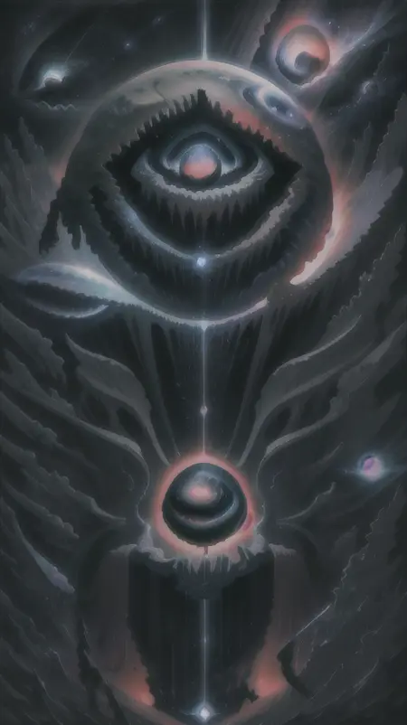 권장 프롬프트: cosmic gods, (face:0.4), (disembodied hand:0.1), space, stars, planets, supernova, black hole, nebula, in the style of Zdzislaw Beksinski, surreal