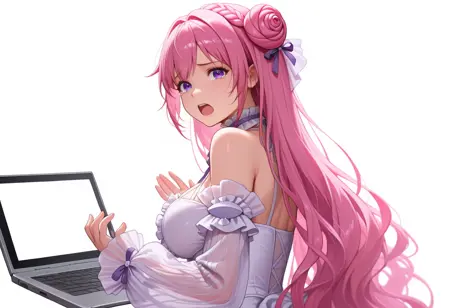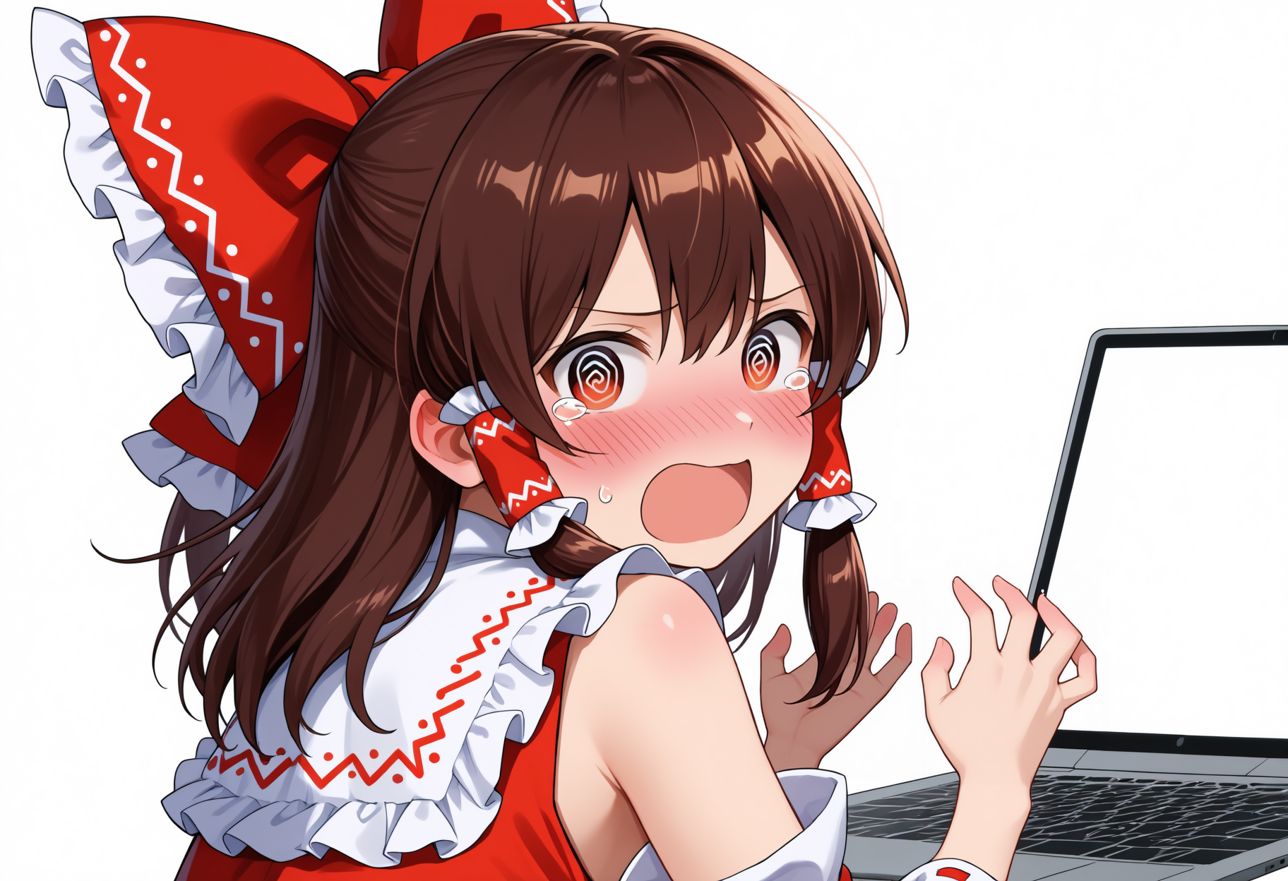 이 태그들 중 일부 사용을 권장: 얼굴 붉힘, 부끄러움, (truth:0.5), 단순한 배경, 흰색 배경, 눈물 흘림