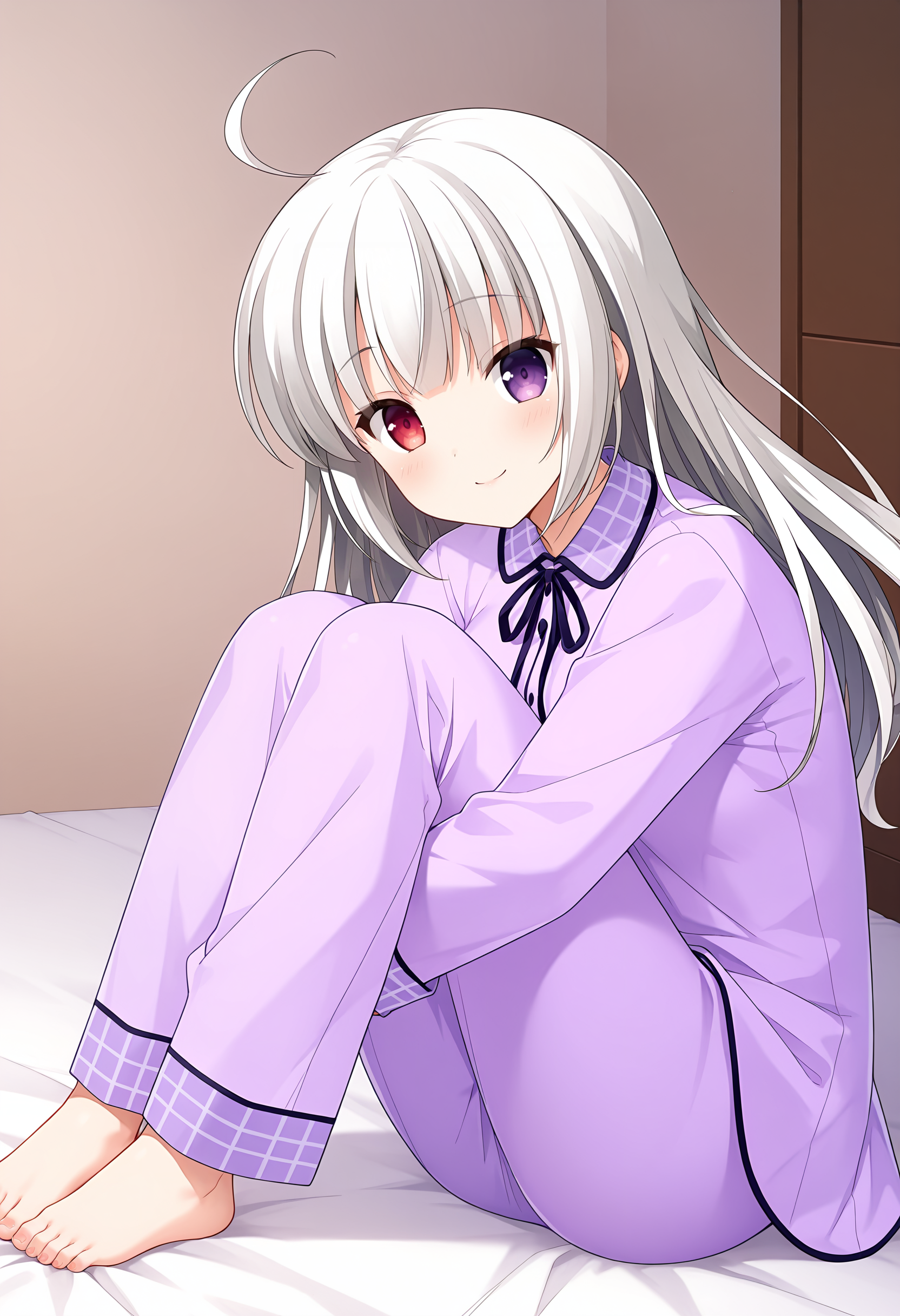 KANAE,SHUIYI,1girl,solo,ahoge,purple pajamas,purple pants,neck ribbon,