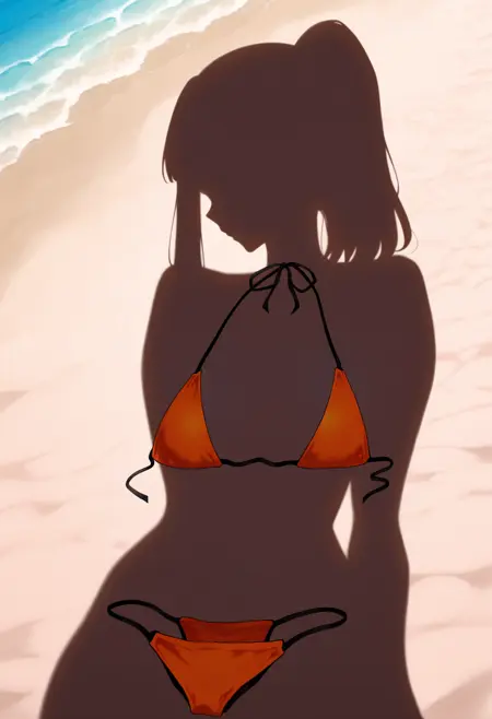 • Main Tags: sand, beach, female pov, silhouette, shadow, pov shadow, implied nudity, unworn bikini