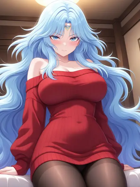 일반: 긴 머리, 파란 눈, 파란 머리, 매우 긴 머리, 귀걸이