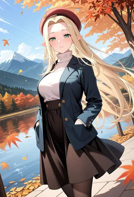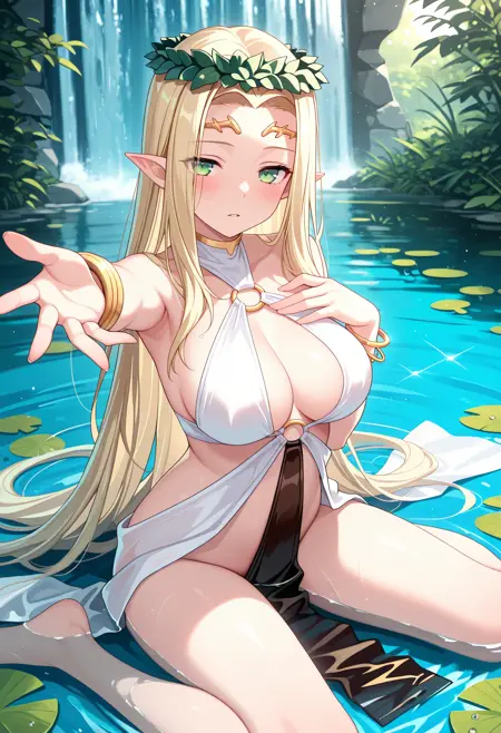 KJOcelestine, blonde hair, green eyes, long hair, pointy ears,