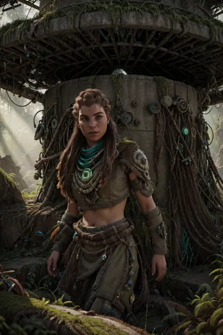 • LoRA trained to 1600 steps with the SD 1.5 base model, with 20 screenshots of Aloy character from the video game "Horizon Zero Dawn"