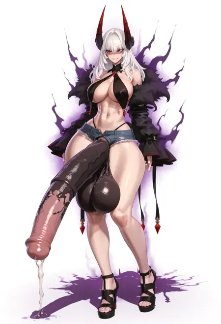 wide hips / huge penis / huge breasts / thick thighs – 過剰に誇張された解剖学的スタイルの核心。