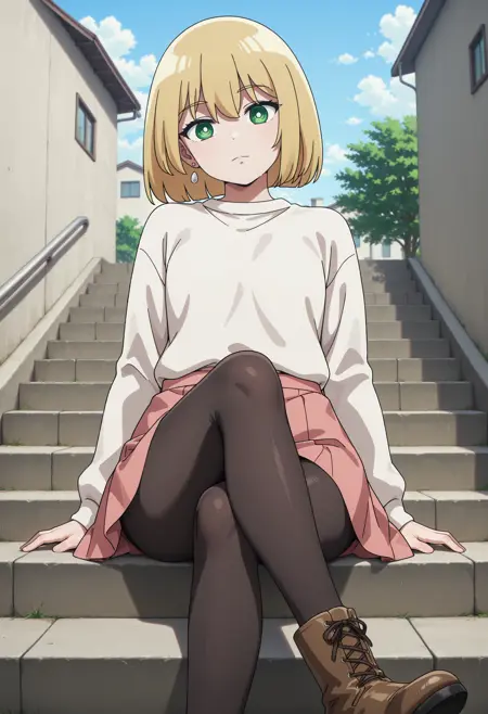 MattanMaki, 녹색 눈, 흰색 동공, 금발, 단발, 밥컷, 중간으로 갈라진 앞머리