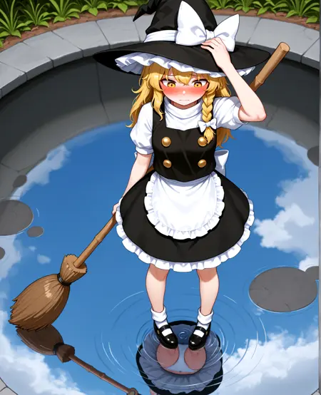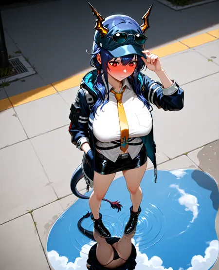 reflective water, reflection, upskirt, from above, puddle, reflective surface, standing on liquid, panties,