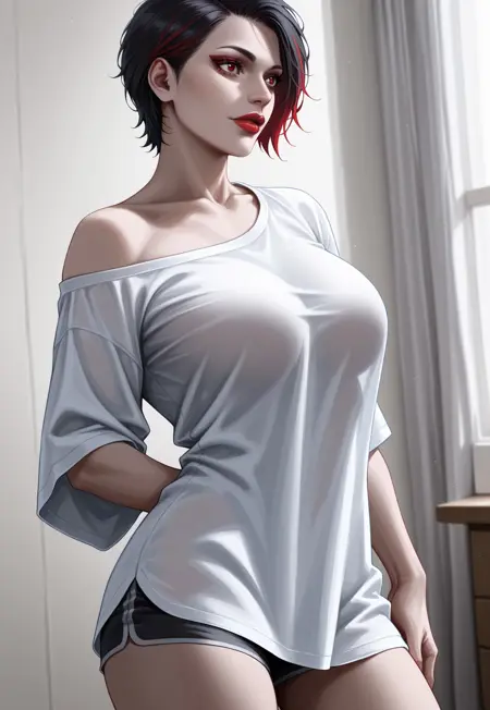 레오타드 복장에는 "벨트"를 부정 키워드로 지정하세요.