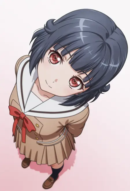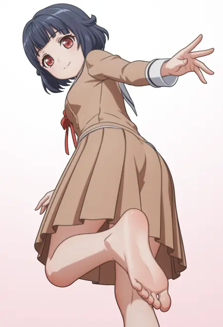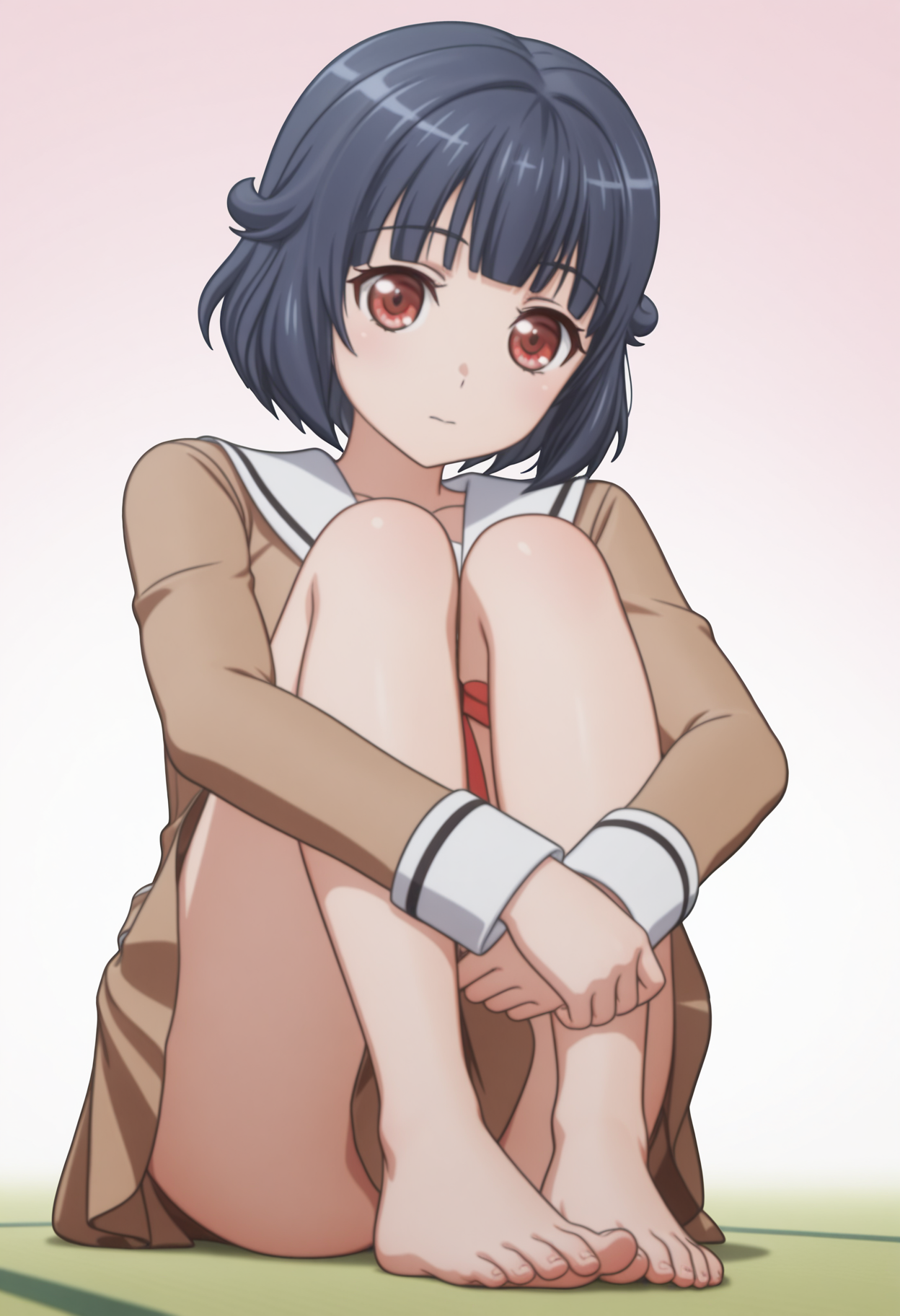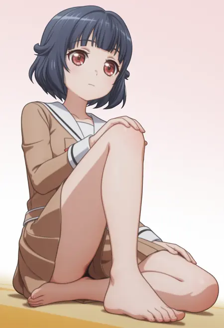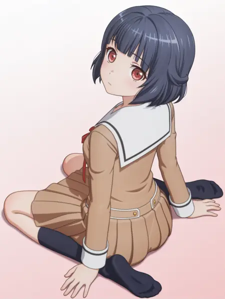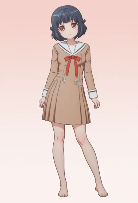 hanasakigawa school uniform, white sailor collar, serafuku, brown shirt, red ribbon, neck ribbon, brown skirt, kneehighs, dark blue socks, loafers,