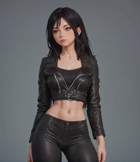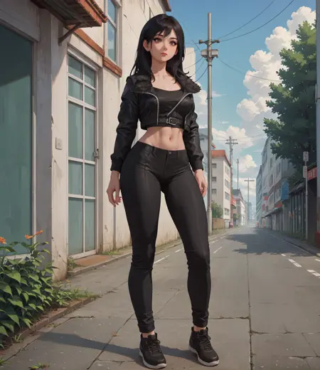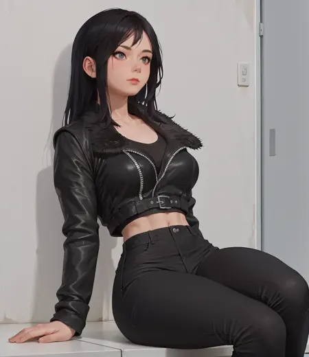 StioSK, black hair, black hair, jacket, wide hips, long hair, pants, black jacket,