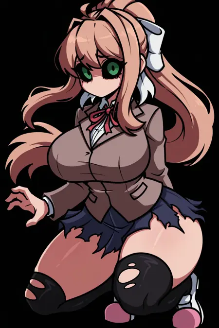 | 학습된 단어 | AsmodeusChr, 1girl, green eyes, black sclera, blood on skirt, long light brown hair, desaturated purple-brown blazer, dark blue skirt, black high socks, white head bow, Pink-white shoes, mouthless, horror, torn skirt, torn socks, red neck ribbon, blunt bags, sidelocks복사됨! |