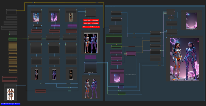 由于Flux Workflow - Multi character with Kontext获得了良好反响,我制作了另一个版本,其效果相似,但基于常规的flux-dev架构(配合flux-redux)运行。