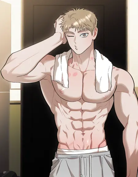タグ: hong_kihoon, 短い髪, 金髪, 茶色の目, 笑顔, 口を開けた, 濃い眉, 茶色の髪