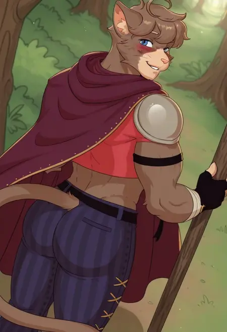 강화 프롬프트: "퍼리, 꼬리, 파란 눈, 근육질, 큰 가슴근"