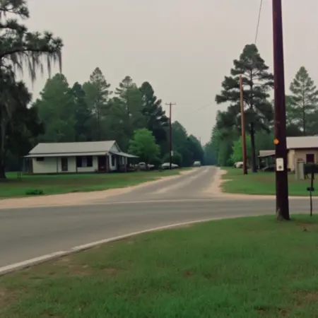 如果愿意,也可以尝试使用 "1981年佛罗里达州沼泽附近小镇的景观照片,老式宝丽来,1980年代美国南方"。