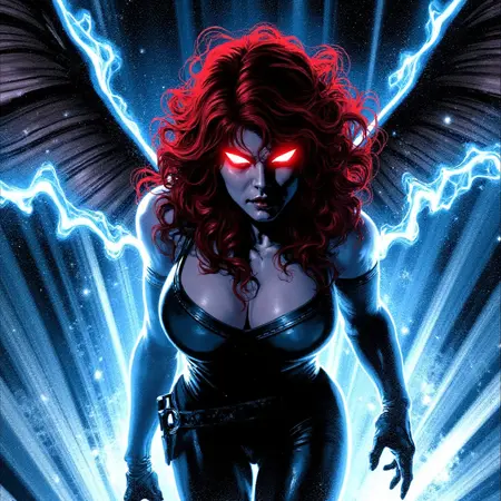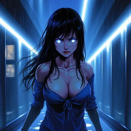角色处于动态中。图像为高度细致的写实数字绘画风格。图像为漫画风格的数字绘画。具有戏剧性的漫画风格插画。这是一幅漫画风格的数字绘画。场景设定在雨夜,背景有灯光和雷暴。