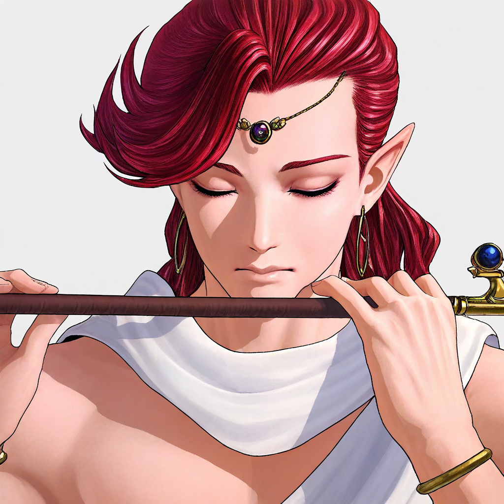 Vishnu_SMT, Red Hair, White Cloth, Red Flute, Holding Red Flute, jewelry
