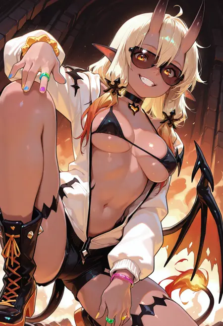 ⚡ 额外信息: 使用 Kohya 在 Illustrious v0.1 上训练,并采用细粒度标签分离以实现最大灵活性。每件衣物和角色细节均独立标注,您可以轻松修改发色、恶魔特征或服装部件等特定元素,而不会影响其他部分。