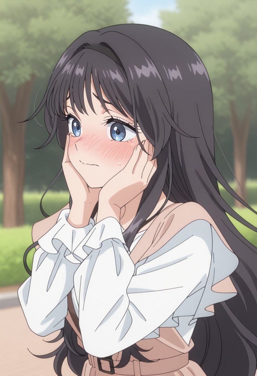 - 表情害羞、腼腆