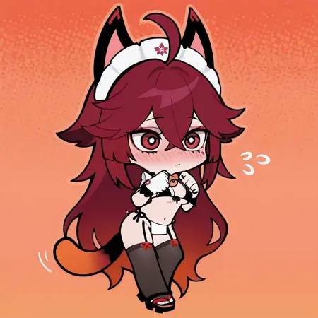 트리거 단어: gloves,thighhighs,white gloves,cat tail,maid headdress,black thighhighs,bikini,fake animal ears,anal tail,fake tail,maid bikini,thong,underboob,