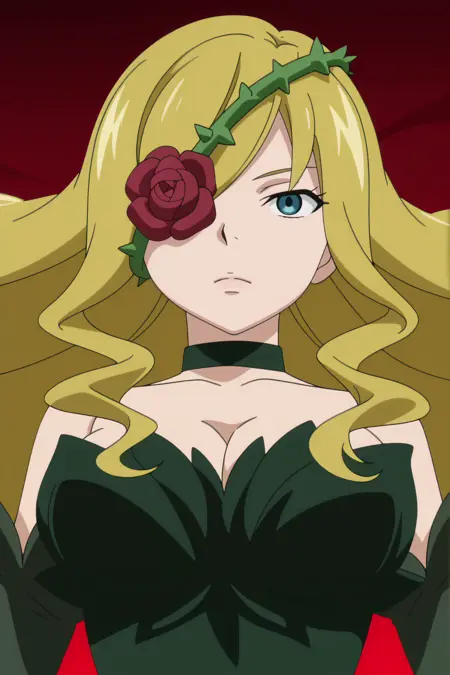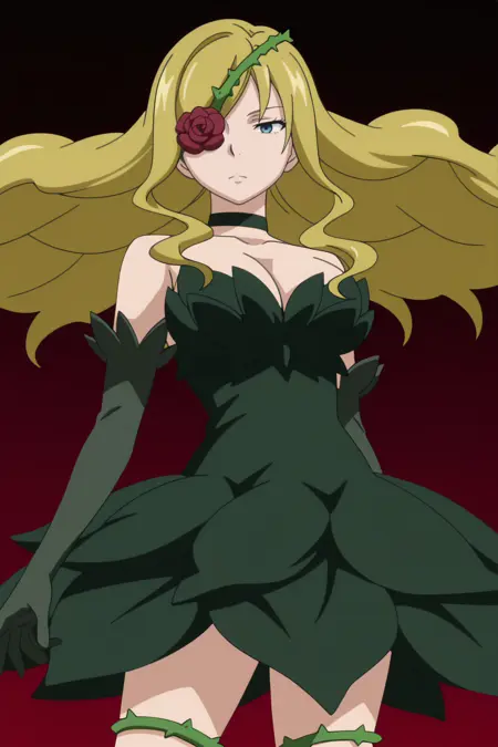 choker, elbow gloves, rose, eyepatch, plant, vines