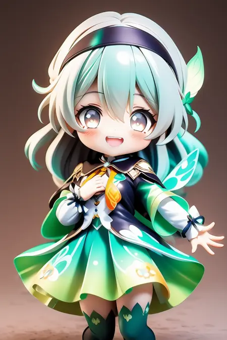 공식 옷은 기본적으로 다음 프롬프트를 재현할 수 있습니다: liuying, Official clothing, 1girl, solo, green thighs, smile, white background, open mouth, Blush, looking at viewer, green skirt, Touch the hair with the hand, long sleeves, black jacket, Orange scarf