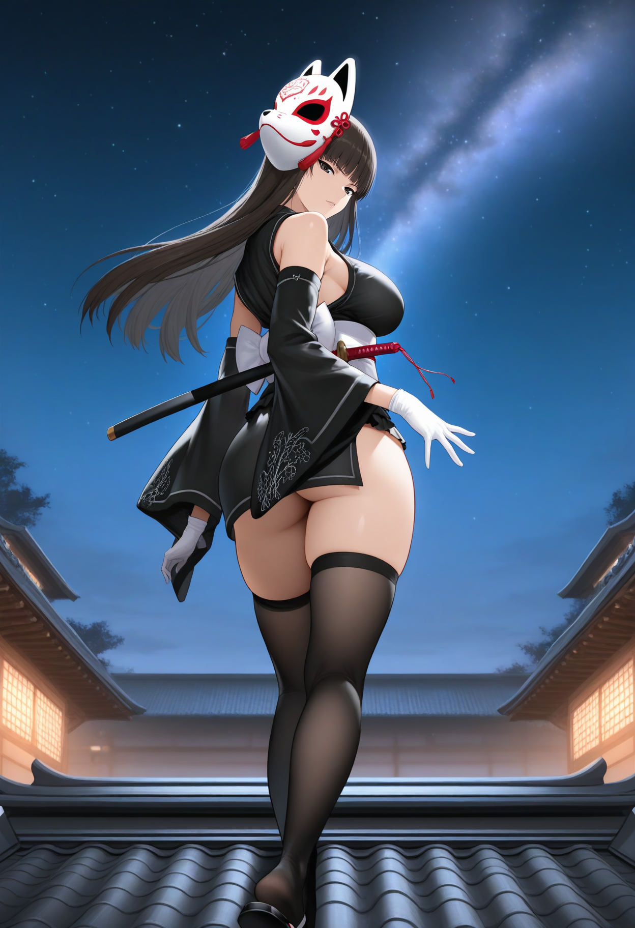 【依頼品】狐面、和服、腰の小刀/Fox mask, kimono, short katana on waist【request】
