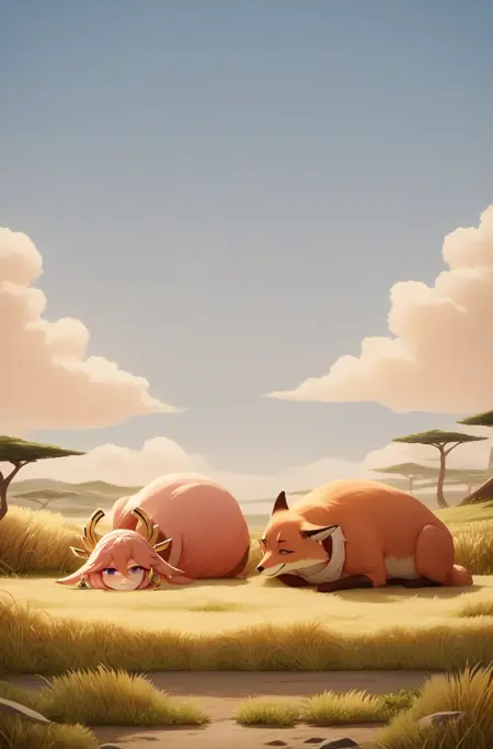 Turn animals into a chubby balloon with this lora! it works well itself with a weight of 0.6-1.0; also fine with cg or real checkpoint; pretty good quadrupedal animals, bipedal, not so much.