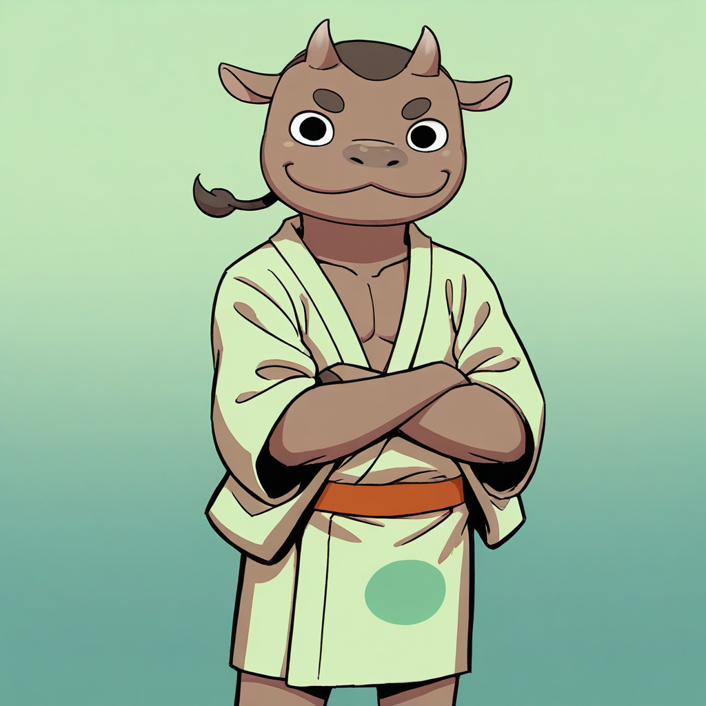 Kudan, bull, brown fur, brown hair, ponytail, bovine tail