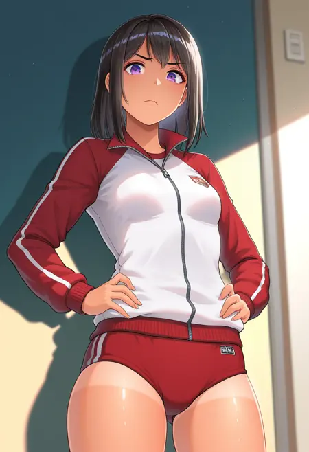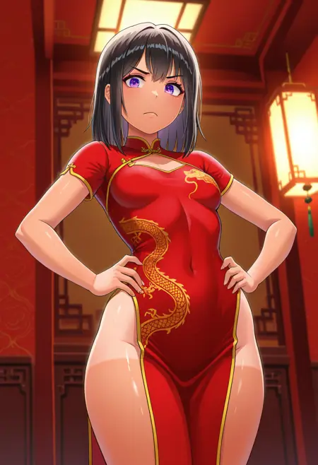 - shinobuww, mature female, tan, purple eyes, black hair, medium hair, small breasts,