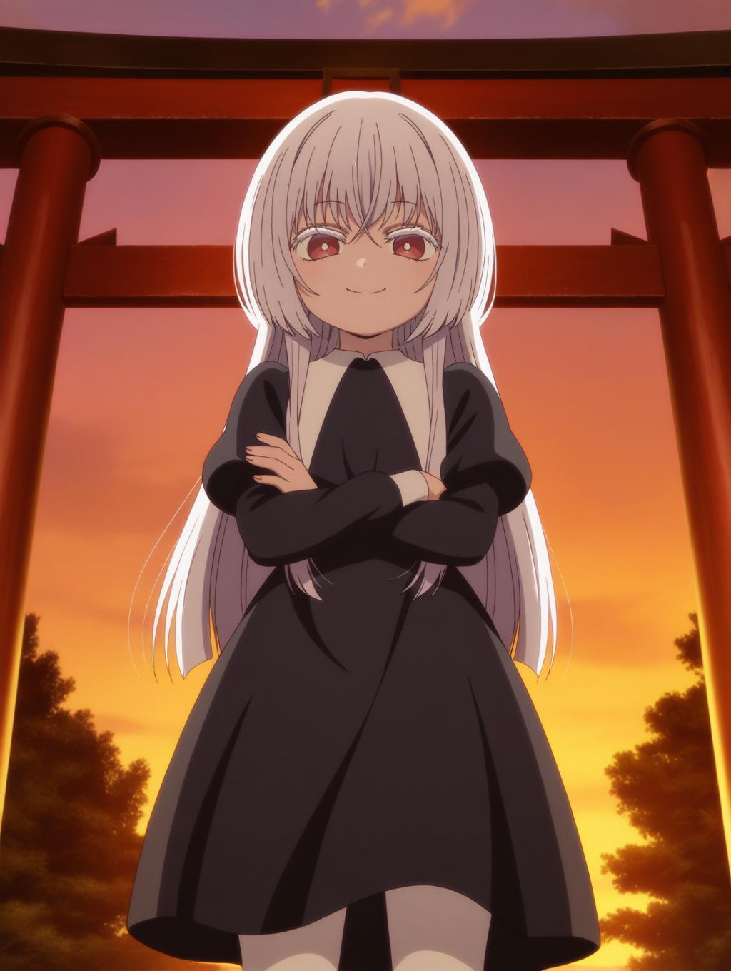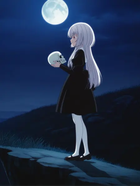 ONK_Tsukuyomi, 1girl, red eyes, white pupils, white hair, long hair, side locks, bangs, white eyelashes, anime screencap, official style