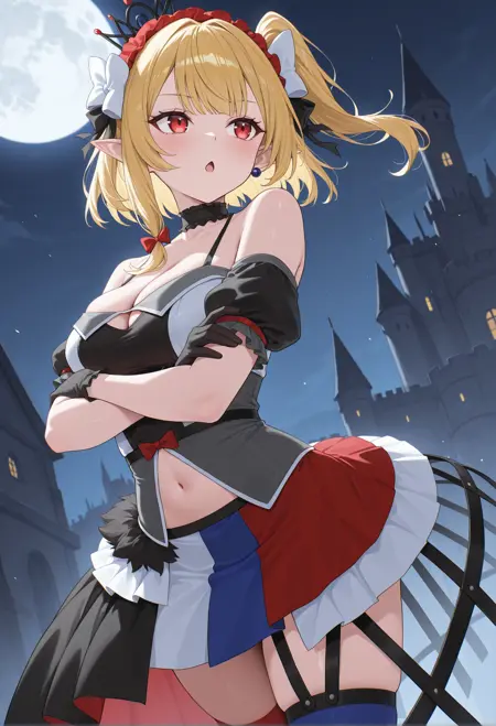 由于该角色素材较少,且服装与外貌均十分复杂,已大幅加强训练。生成理想的构图可能较为困难。