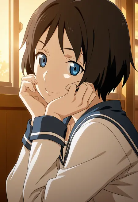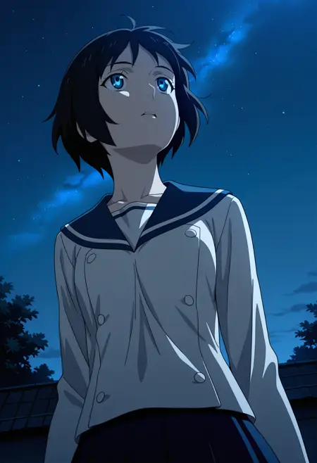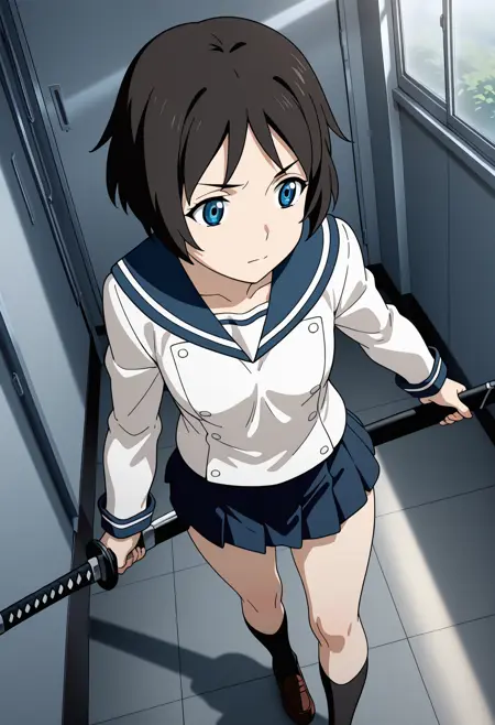 tsuchimiya_kagura, black hair, short hair, blue eyes,