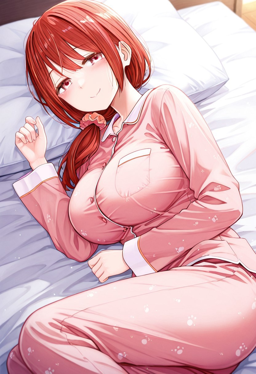 red hair, long hair, low side ponytail,