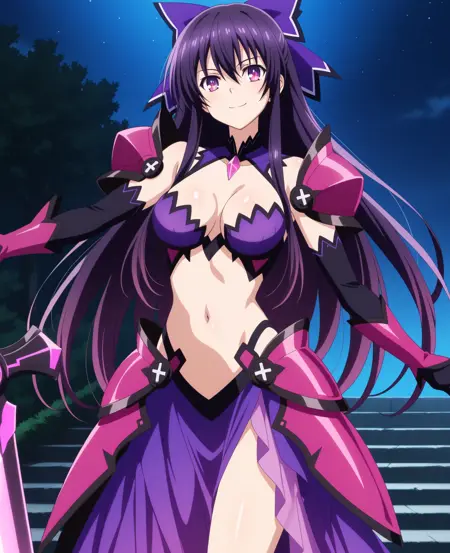 Tohka, purple eyes, purple hair, long hair, purple hair ribbon,