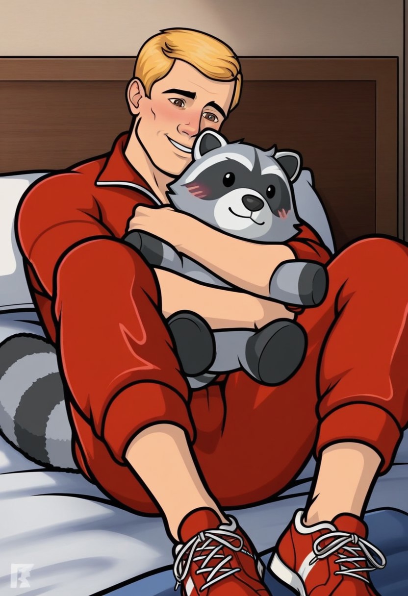 1man,solo,male focus,Barry Dylan,short hair,blonde hair,brown eyes,muscular,athletic,red tracksuit,red jacket,red pants,red shoes,