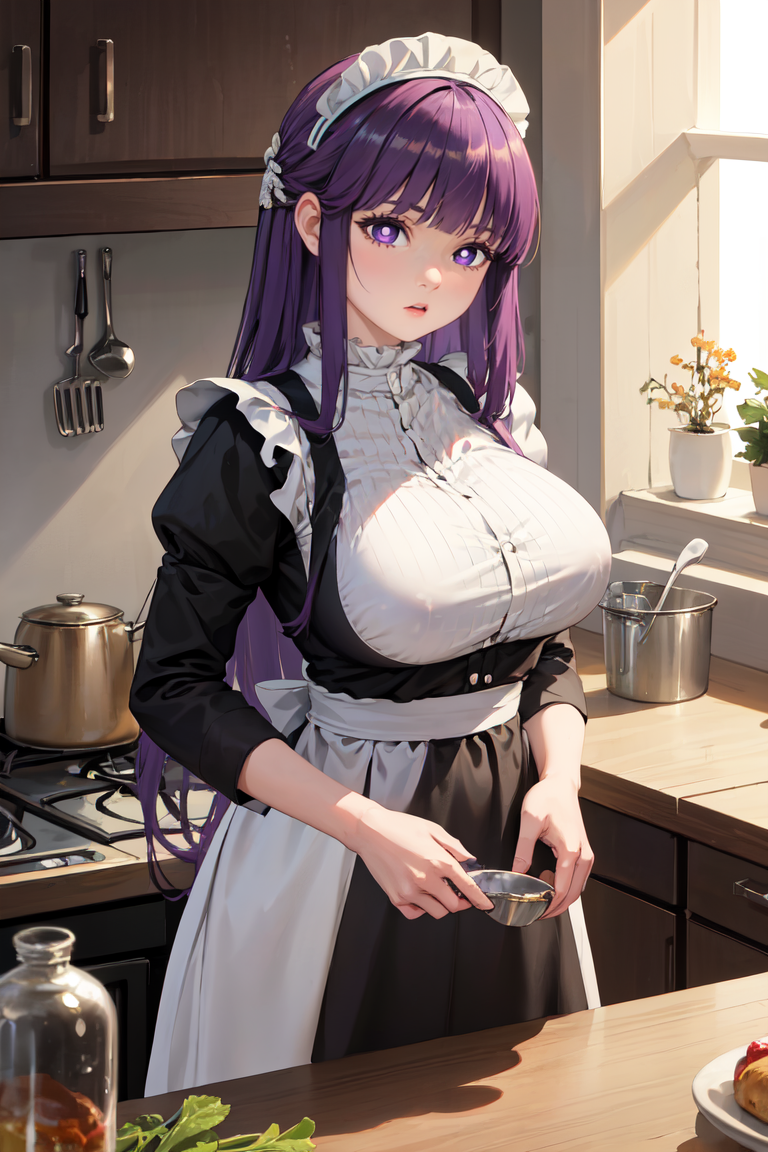 FernFrieren, purple pupils, long hair, half updo