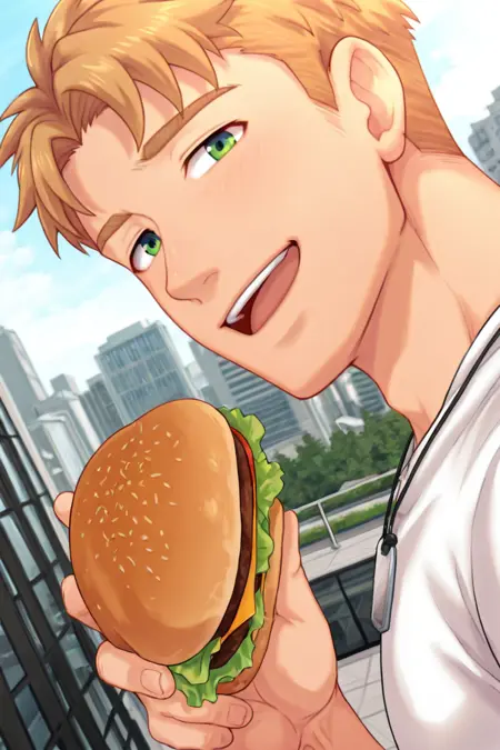 Yoshi=nagiyoshcb-3rdmale focus, blonde_nagiyoshcb_3rdmale hair, green_nagiyoshcb_3rdmale eyes