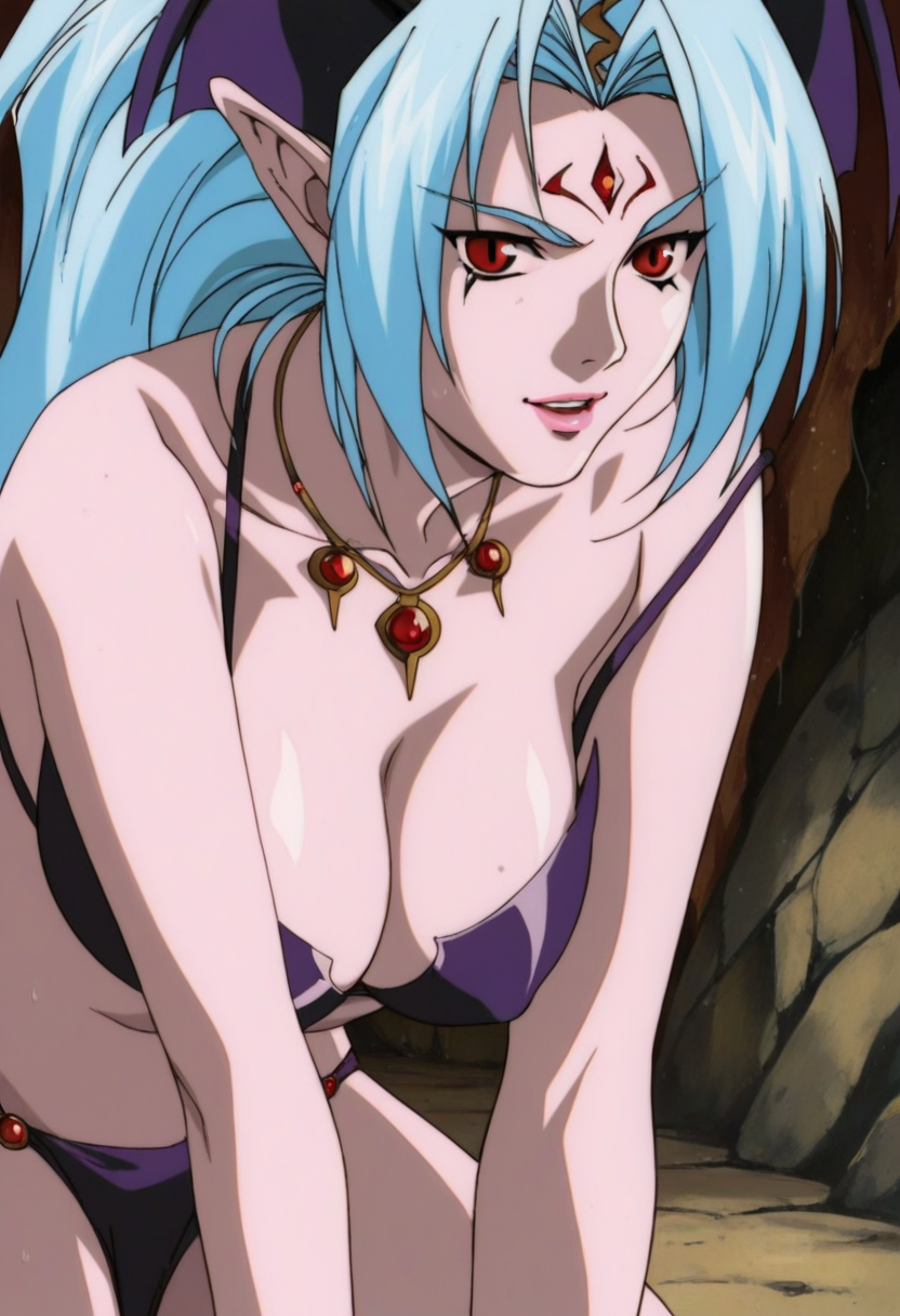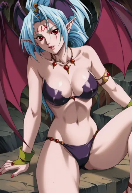 트리거" deltapony, 악마 소녀, 가슴, 뾰족한 귀 여자, 빨간 눈, 파란 머리, 목걸이, 가슴 사이, 팬티