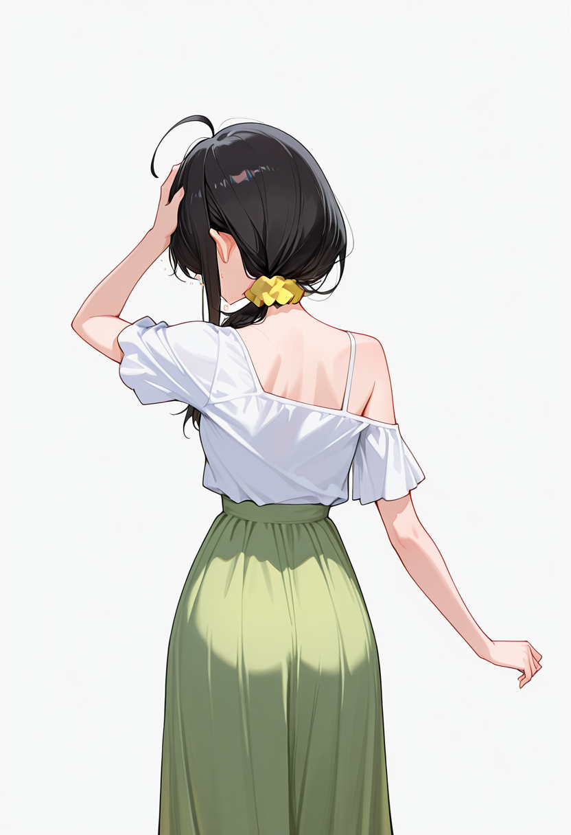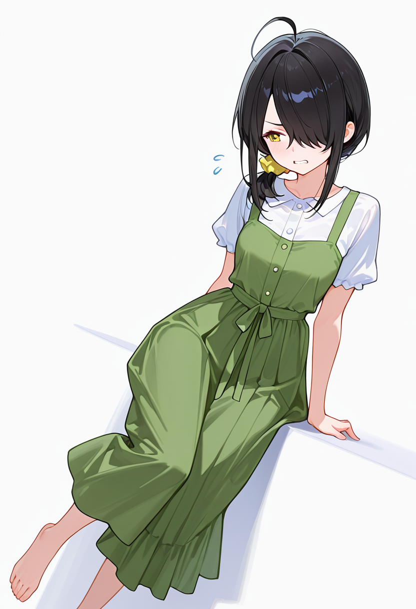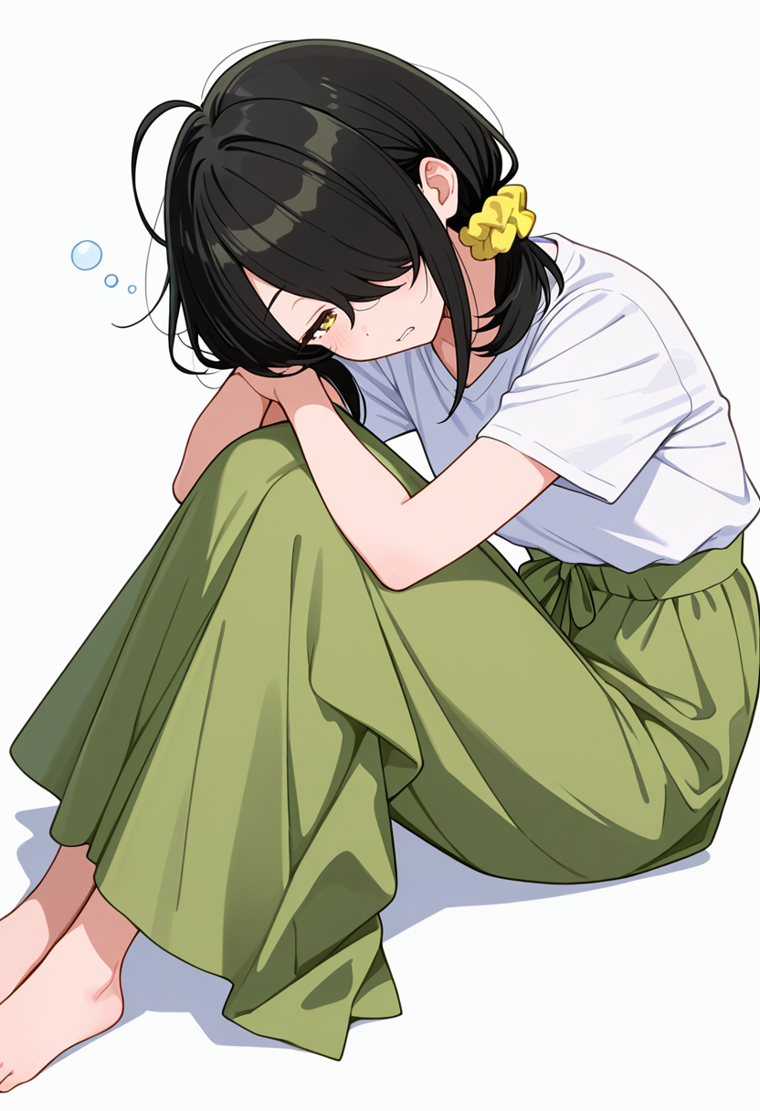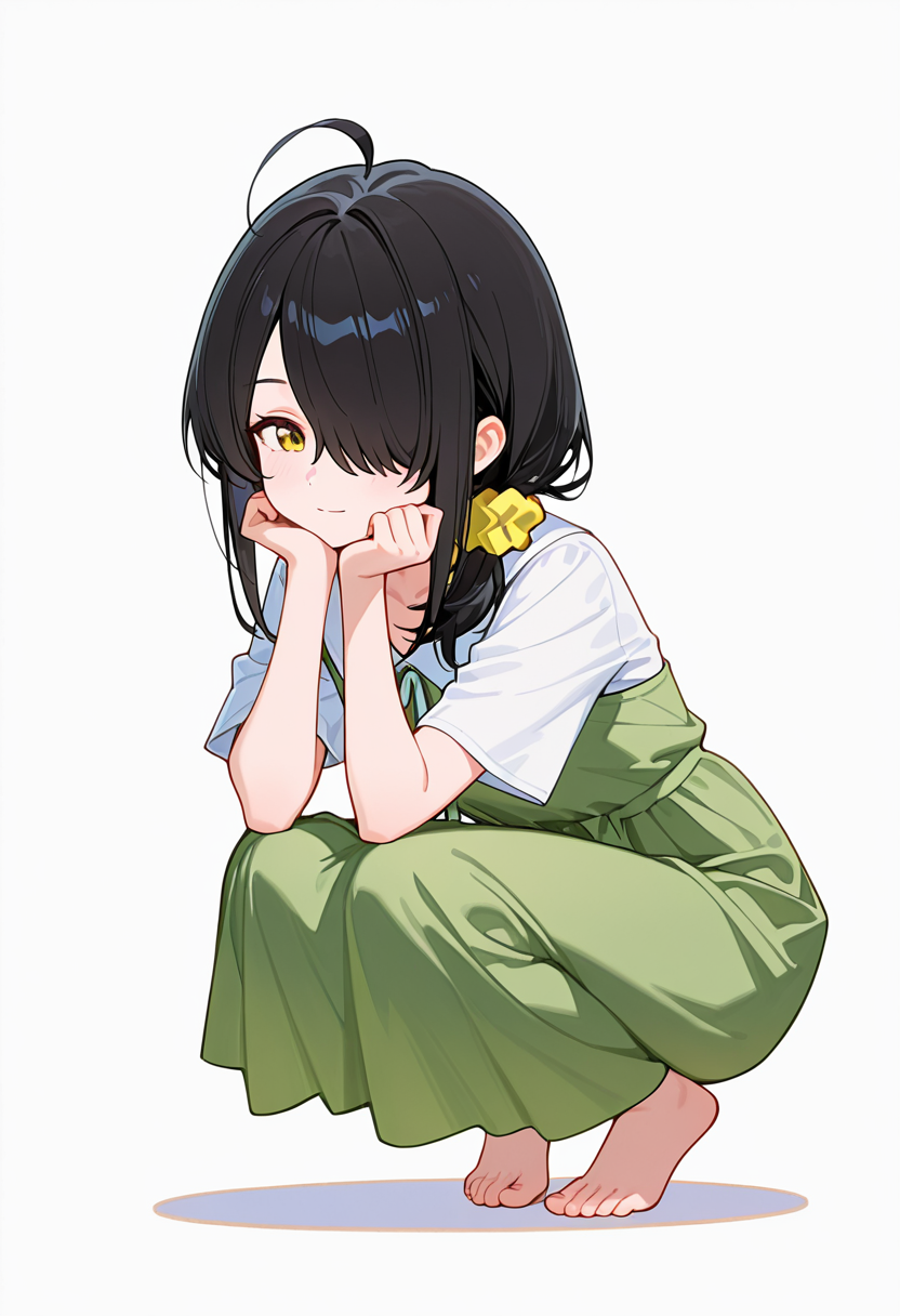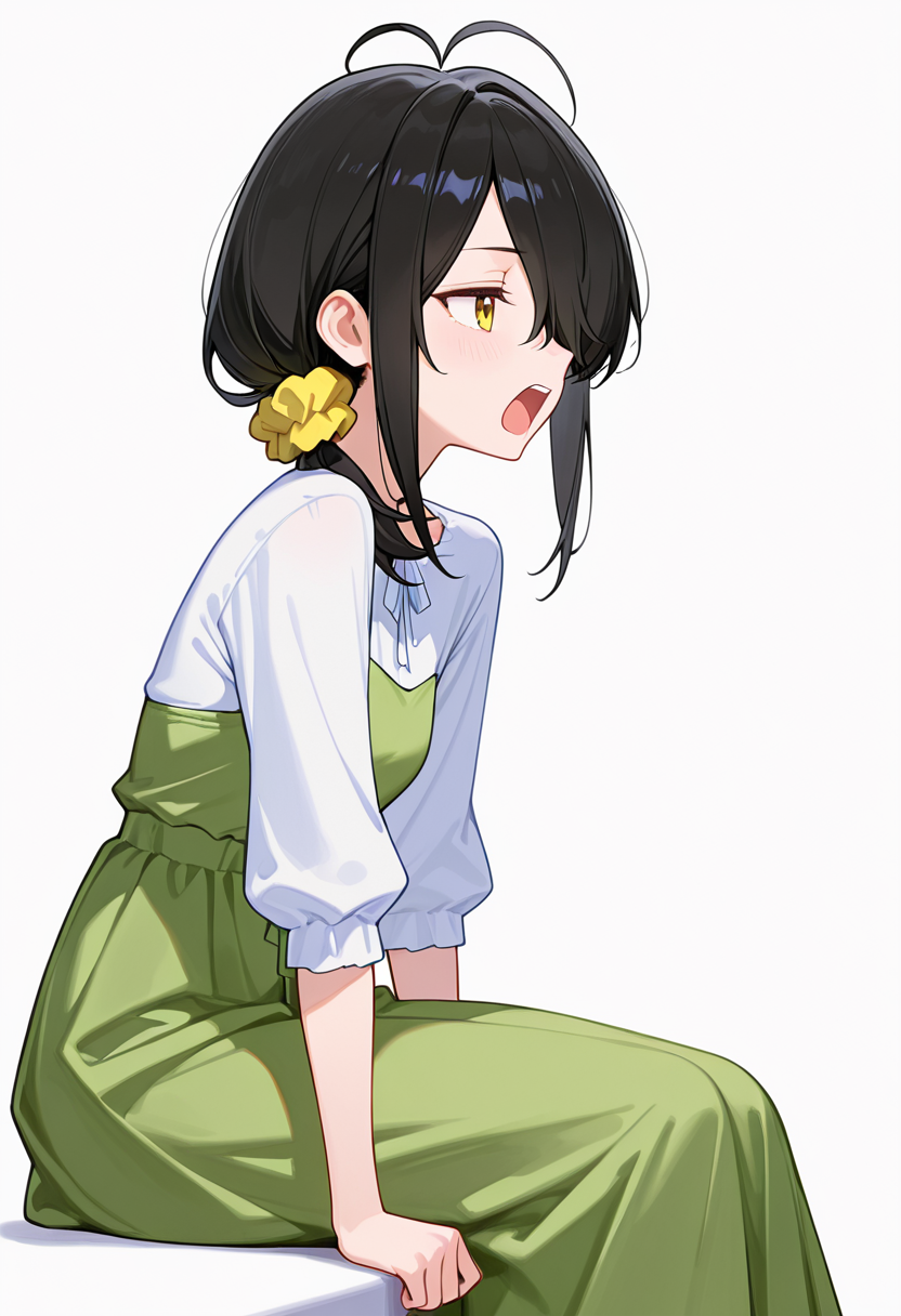 kotono_cnr, enh_cnr,1girl, black hair,hair over one eye, sidelocks,ahoge, yellow eyes, yellow scrunchie,enh_cnr,