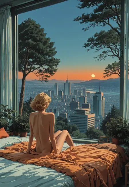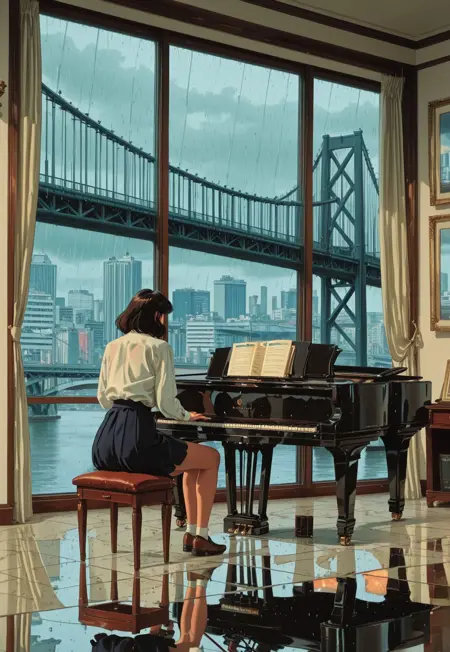 lofi_anime(シンプルで過学習しやすい):トリガーワードを使用してLoRAの重みを約0.7に下げてください。