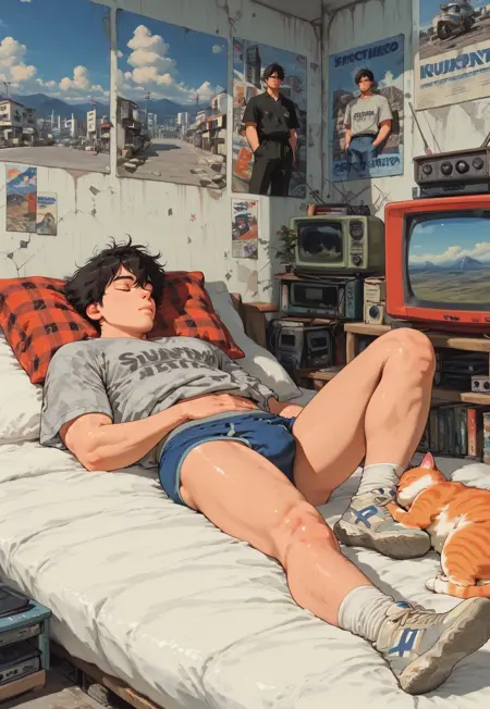 lofi_anime (๊ฐ๋จํจ, ๊ณผ์ ํฉ): ํธ๋ฆฌ๊ฑฐ ๋จ์ด์ ํจ๊ป LoRA ๊ฐ์ค์น๋ฅผ ์ฝ 0.7๋ก ๋ฎ์ถ์ธ์.