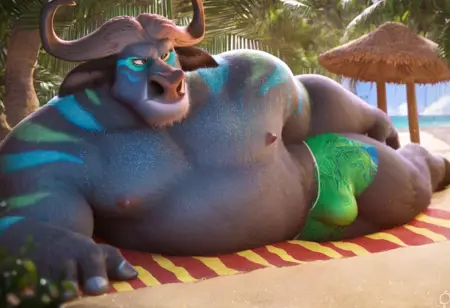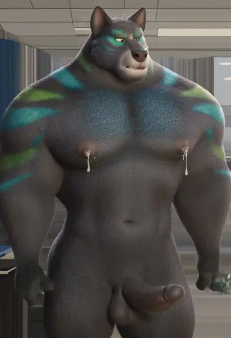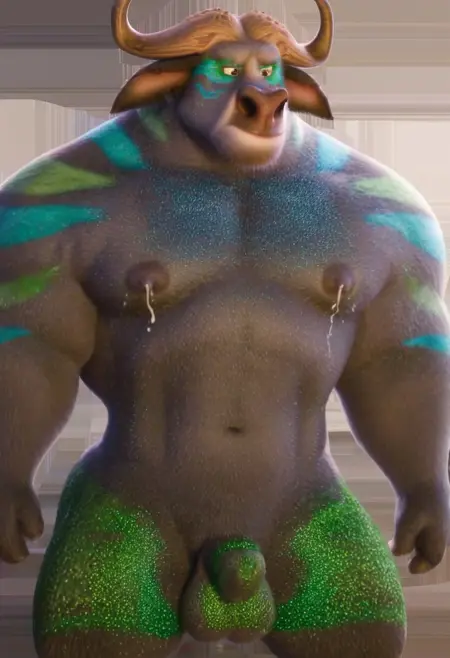 これは、ズートピアのボゴ警部で、魅力的なボディペイントが施されています。