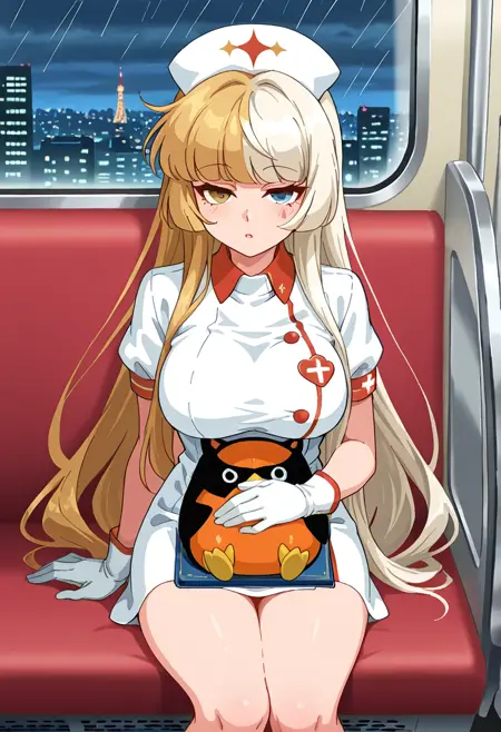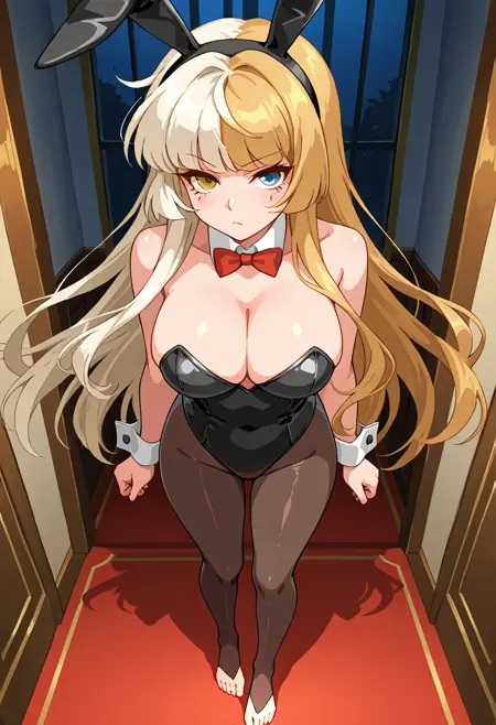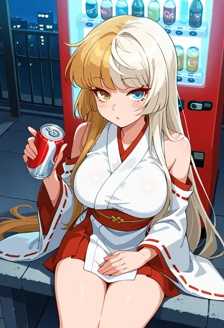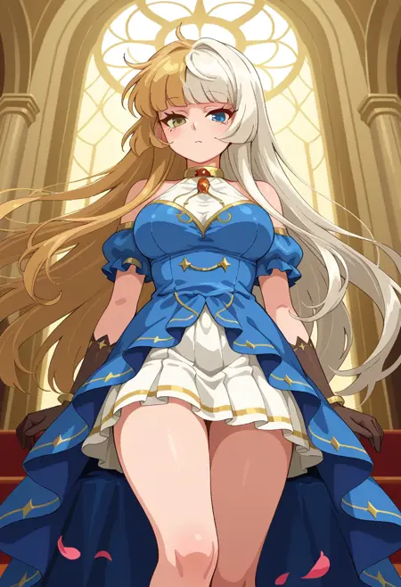 一般的なプロンプト: 異色瞳、青い目、多色の髪、金色の髪、二色髪、色分けされた髪