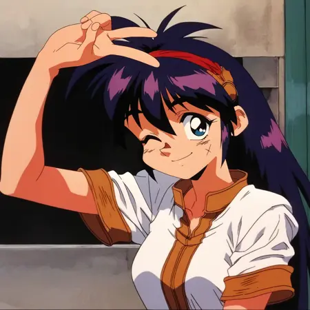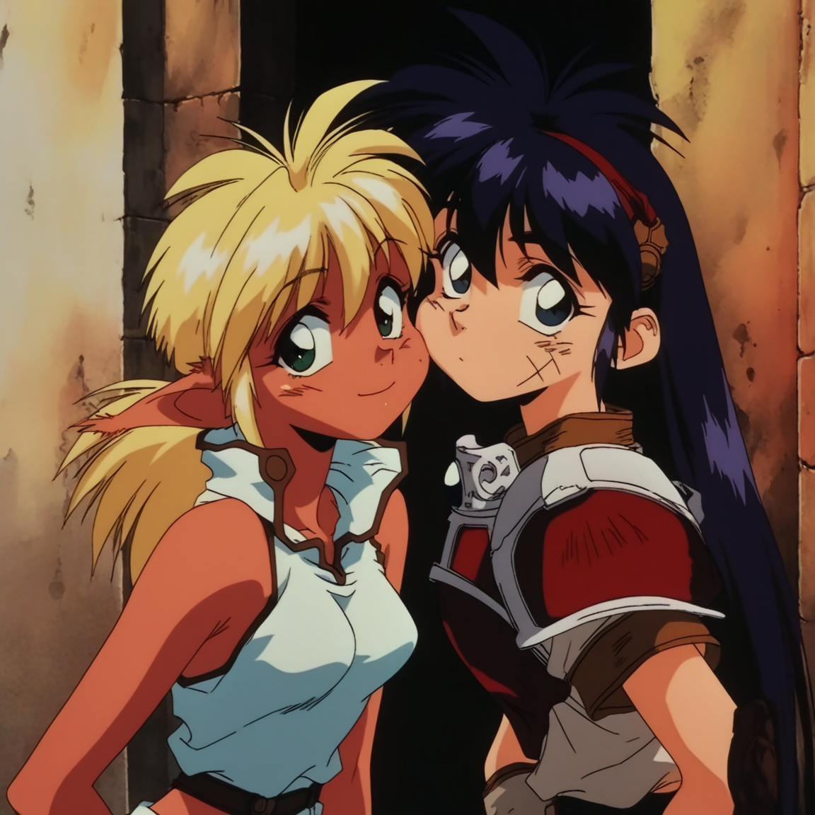 1995년 OVA 『루인 익스플로러스』에 등장하는 팸, 이리에, 라샤. 원작은 일본의 "RPG 매거진"에 연재된 만화로, 만화가 타나카 쿠니히코(田中久仁彦)가 이후 『제노기어스』의 캐릭터 디자인을 맡았다.
