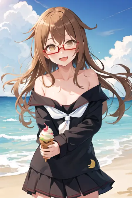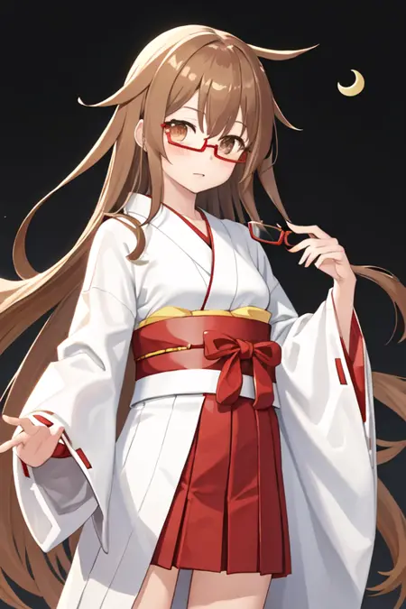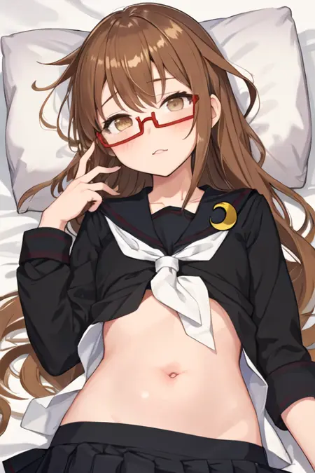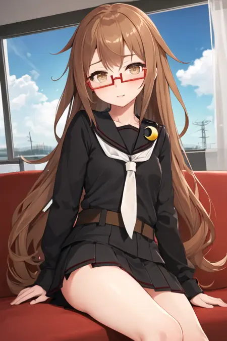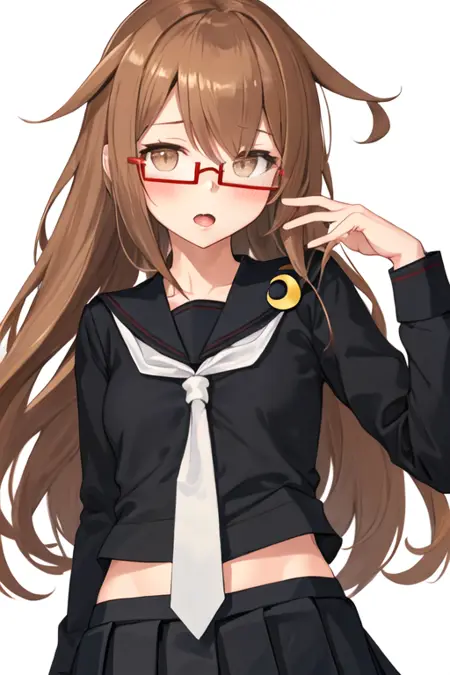 トリガー語はmochizuki_kantaicollectionで、推奨タグはbest quality, masterpiece, highres, solo, {mochizuki_kantaicollection:1.15}, long_hair, brown_hair, glasses, brown_eyes, red-framed_eyewear, semi-rimless_eyewear, serafuku, crescent, black_serafuku, blush, under-rim_eyewearです。