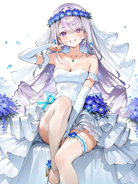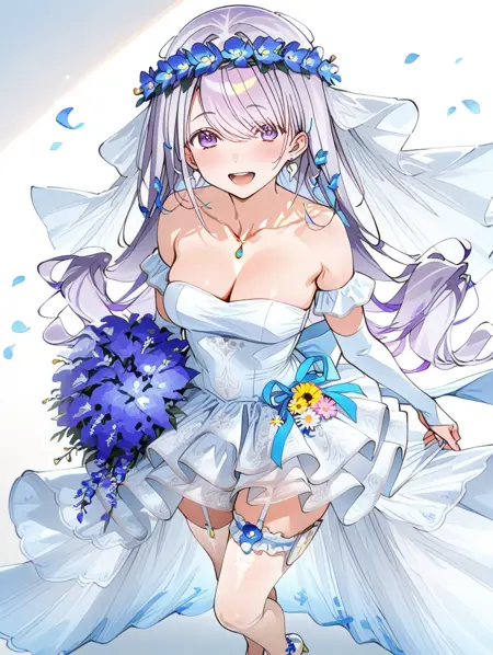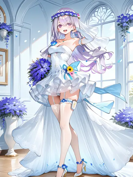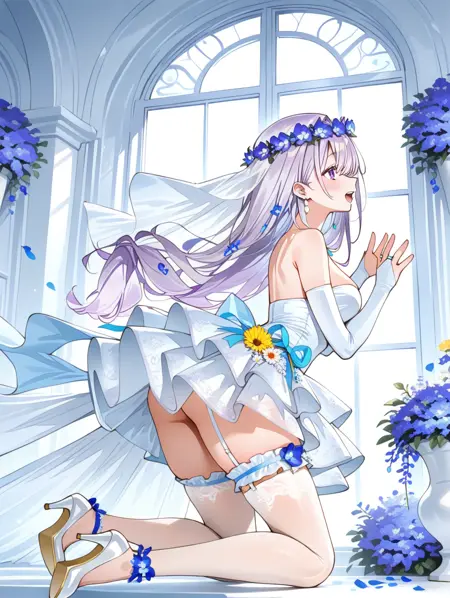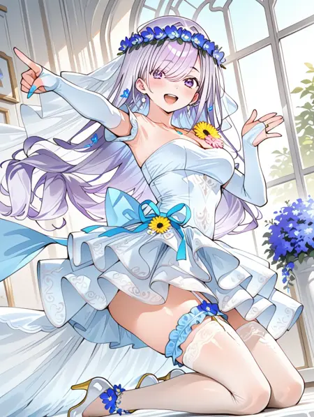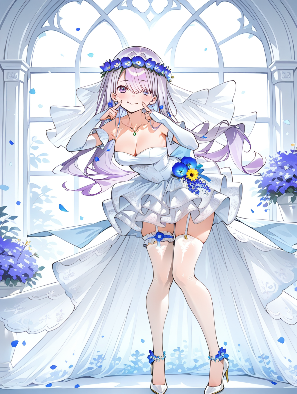 プロンプト例: kokusei,長い髪,ヘッドセット,茶色の肩アーマー,白いドレス,ノースリーブ,ベルトポーチ,ミニスカート,シンナー,膝パッド,靴,太ももストラップ,マント,